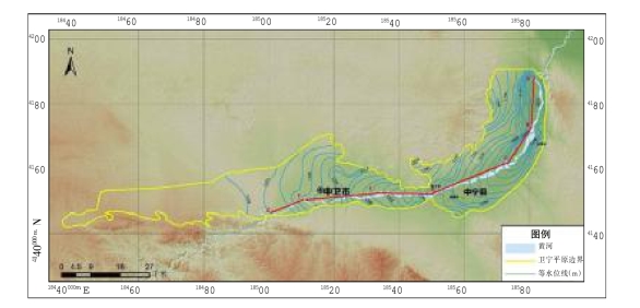 黄河贯穿卫宁平原,平原灌区由于受到引黄灌溉的补给,潜水水位埋深较浅,多在1~3 m,潜水位普遍高于黄河水位。从潜水等水位线图分析,潜水流向黄河。黄河基本上是排泄地下水的边界。