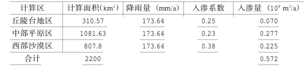 式中:Q降水——大气降水入渗补给量(108 m3/a);