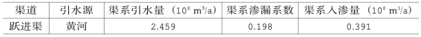 由于卫宁平原渠系在近些年中不断添加衬砌,使得渠系入渗量不断减少,根据所了解情况,区内仅有跃进渠尚未进行衬砌,其他渠系基本上完成衬砌,仅留有少量未衬砌部分,该部分渠系入渗补给量由模型在计算中根据实际情况进行添加。