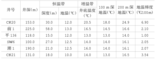 根据沙湖地区浅层地温资料,主要来源于地下水动态监测孔及钻孔测温数据,为研究浅层地温场分布特征提供了基础数据(表6-1)。通过收集区内80~300 m深地下水动态监测孔测温数据,该地区恒温带深度一般为15~45 m,平均深度为30 m,恒温带温度一般为10℃~13℃,平均温度为12.5℃,恒温带深度略小于银川地区。地温分布特征总趋势表现为西南沙湖一带较高,地温>20℃的较明显异常区分布于姚伏镇—沙湖一带,主要与姚伏隆起、常信堡凹陷有关。