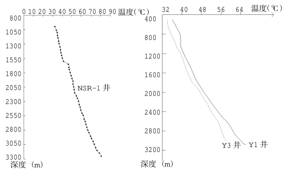 图6-5 NSR-1井及Y1井和Y3井测温曲线图