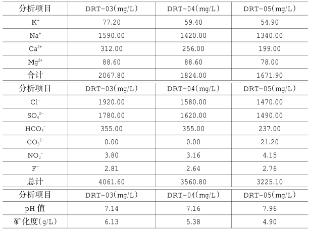 从上述分析可得出,热储水化学类型主要为Cl--Na、SO4-Na型。矿化度为4.90~6.13 g/L,pH值为7.14~7.96。此外,地热流体中氟化物含量有不同程度的富集(表6-8)。
