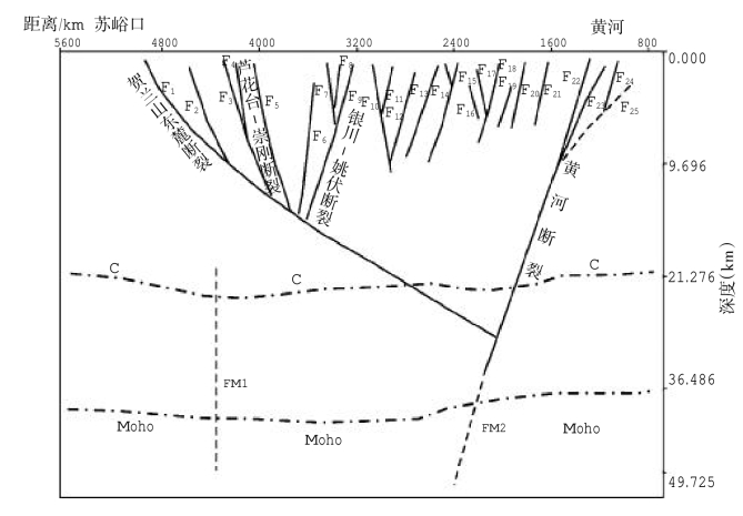 图6-8 银川盆地深地震反射剖面解释结果图(据方盛明等,2009)