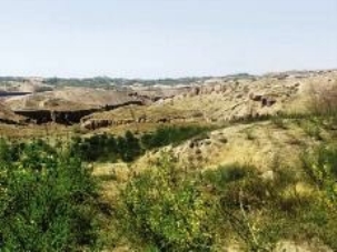 景城区地貌以台地为主,卫星影像图分析显示,景城区主体呈北东—南西走向,城区地势较为平缓,南北两侧被山地丘陵环绕。南侧地形以山地为主,与景城区平地的接触带主要沿水洞沟方向,呈北西—南东走向,接触带部位多出现断层崖地貌(图6-16),断层崖高50~100 m,崖坡陡峻;北侧地形多以山地丘陵为主,与景城区平地接触带多出现沟壑地貌(图6-17),南北两侧地貌特征反映了景城区南北两侧的北西—南东向断裂特征。结合大地电磁剖面推断解译的通过三口地热井沿北西—南东向横穿景城区中部的断裂综合分析,三条断裂均匀分布在景城区的北、中、南部,走向均为北西—南东向,通过研究黄河断裂的发育特征,推断其为垂直于黄河断裂的一系列次级断裂。