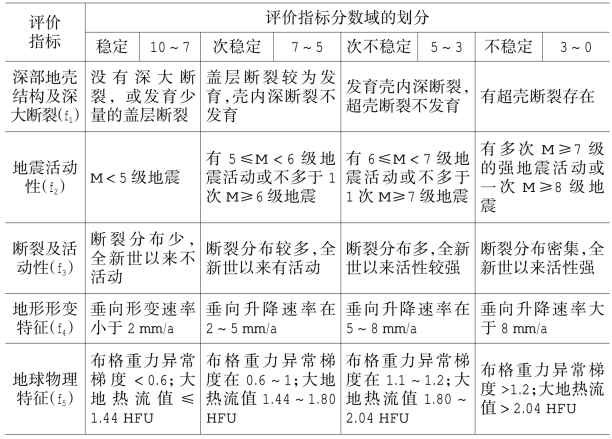 表9-4 地壳稳定性评价指标数量化评分准则一览表