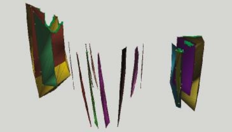 断层建模前需对产状数据进行前期处理,先将产状数据(倾向<倾角)根据换算公式在excel表中换算成切向量(X,Y,Z)的形式,再导入GOCAD构建断层界面。