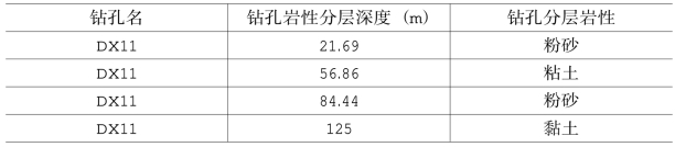 表14-2 钻孔岩性分层表