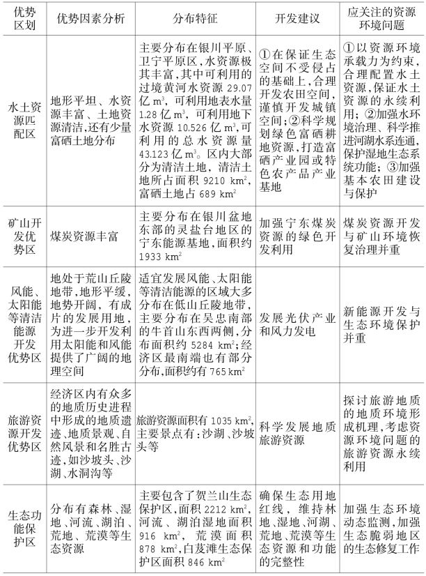 表15-1 宁夏沿黄经济区国土空间开发自然资源优势表