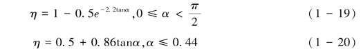 1)引入下坡向溅蚀质量比率/分数η(Fraction of sediment splashed downslope)来表征单个雨滴溅蚀强度随坡度和坡向的变化趋势及雨滴动量在上坡向和下坡向的分布。和具有相同功能的式(1-6)、式(1-11)和式(1-12)等理论公式相比较,下坡向溅蚀质量比率/分数η是基于室内实验观测的统计公式,其可以表示为式(1-19)和式(1-20):其中式(1-20)适合表述坡度在25°(0.44弧度)以下的情形。式(1-19)和式(1-20)的优点是简洁的,不需复杂的计算,但应该看到该统计模式仅是对沙粒溅蚀结果的归纳,其普适性还需要进一步验证。