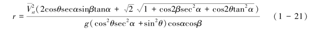 2)利用牛顿第二定律计算平均径向溅射距离r,其可以表征为平均起跳角β和平均起跳速度及径向方位角θ的函数,见式(1-21):但用式(1-6)、式(1-11)和式(1-12)来推测平均溅射距离更简洁。