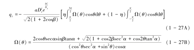 3)借助Reeve(1982)上坡向和下坡向溅蚀输送率模式建立净溅蚀率积分式,即式(1-22)~式(1-24),它们分别代表上坡向、下坡向和净溅蚀单位宽度输送率。