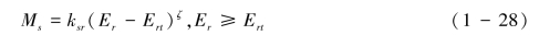 其中Ert为临界溅蚀动能,其数值反映了土壤对雨滴溅蚀的阻滞效应,且随着土壤类型的变化而变化。ksr为土壤解离系数,ζ为经验参数,Ms代表单雨滴溅蚀质量。式(1-28)中涉及的经验参数依靠实验观测获得。