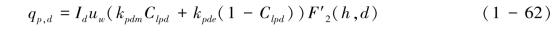 结合式(1-36)和式(1-61),全面反映薄层水深度、流速和领近雨滴溅射-薄层水跃移输送沉积等对任意计算网格内溅蚀跃移输送强度影响的qp,d可表述为式(1-62):