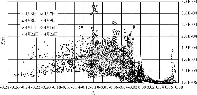 图3-3 风蚀观测日空气动力学粗糙度与里查孙数Ri的变化(梅凡民等, 2006)