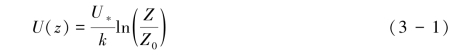 其中,U(z) 为高度z处平均风速,U∗为摩阻速度,它表征了湍流平均剪切应力,Z0为空气动力学粗糙度,是指流速为零的高度,其反映了光滑壁面对流体的阻力效应。