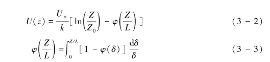 非中性层结下风廓线方程(Nieuwstadt, 1978; Frangi & Richard, 1999)为式(3-2)和式(3-3):