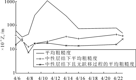 图3-5 风蚀观测期间日平均的空气动力学粗糙度的比较(梅凡民等, 2006)