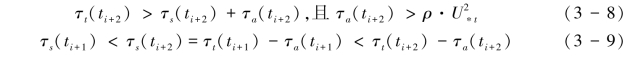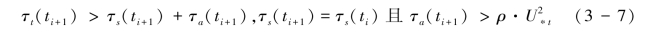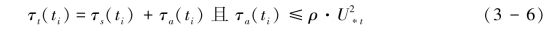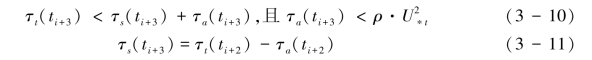 这里假定ti+1时刻主流区大量动量下传,首先边壁区出现低速上抛事件,由于边壁区沙粒群对湍流动量响应的滞后性(可以认为τs(ti+1)=τs(ti)是成立的),风沙两相流失衡,这时气固两相流的定量关系式为: