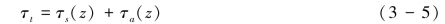 按照风沙边界层动量守恒的原理,可以建立起跳沙粒群动量和湍流动量的基本关系式(Owen, 1964)(3-5):τt,τs(z),τa(z)分别是风沙边界层主流区湍流的总动量(或雷诺应力)、跃移层z高度处运动沙粒群的动量(或雷诺应力)和湍流的动量(或雷诺应力)。