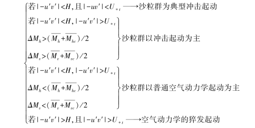 著者认为,湍流随机脉动导致的普通空气动力学的起动无论是在湍流释放动量强度、还是在风沙颗粒起跳的阵发性以及沙粒群碰撞过程的动量损失等方面都与湍流相干结构产生的空气动力学猝发起动存在明显的区别,因而这里把空气动力学起动划分为普通空气动力学起动和空气动力学的猝发起动。