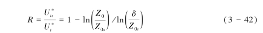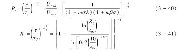 根据Arya的应力分配理论(Arya, 1975):气流被地表覆盖的粗糙元分割成4个区域,其中在粗糙元上方和粗糙元之间的一定距离内形成了发育良好内边界层和外边界层,中性条件下内边层和外边界层的风廓线服从对数法则,于是可以把应力分配模式表示为式(3-42):