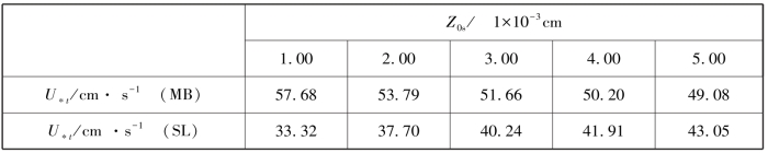 表3-10 敏感性试验-模式预测起动摩阻风速U∗