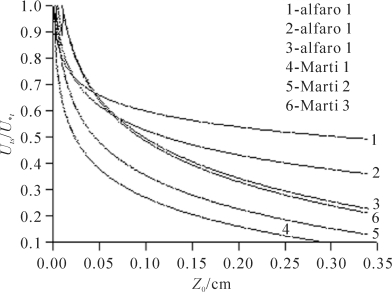 图3-39 MB和 SL模式预测的应力分配系数(alfaro 1和Marti 1对应的Z0s=0.001 cm, alfaro 2和Marti 2对应的Z0s=0.002 cm, alfaro3和Marti3对应的Z0s=0.005 cm.)(梅凡民等,2006)