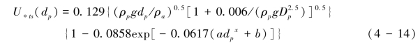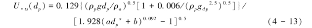 在式(4-21)的推导中,采用了的定义及稳恒状态时上升颗粒数等下降颗粒数的假定。
