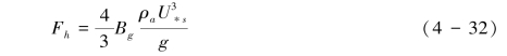 忽略气流对沙粒起跳的垂向作用力,则可推导出式(4-23)这里hs是跃移颗粒平均跃高: