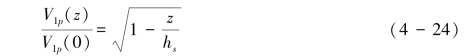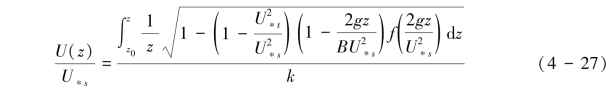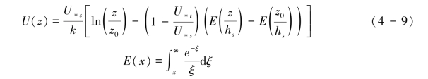 整合式(4-2)、式(4-25)~式(4-26)则可推导出跃移层内风速廓线方程式(4-27):