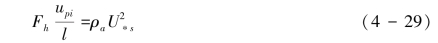 假定单沙粒的质量为mp,起跳的水平速度和垂直速度分别为upl和Vpl,入射水平和垂直速度(或称为碰撞速度)分别为upi和Vpi, 水平跃距为l, upl被认为很小趋近于零(这个假定是不对的,仅对部分溅射颗粒成立),跃移通量为Fh,则气流输送沙粒在单位时间、单位长度、单位宽度损失的动量为MNL可表示为式(4-28):