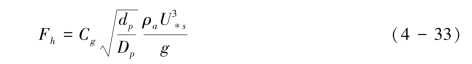 式(4-33)即为经典的Bagnold跃移模式, 其中均一沙时,Cg=1.5,天然分选的沙丘沙Cg=1.8,广泛粒径分布的混合沙Cg=2.8,dp研究沙粒的平均粒径,Dp=250 μm为参照粒径。