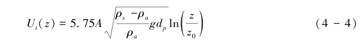 这里U∗s为跃移时的摩阻风速,Z0s为跃移时风廓线焦点/结点高度(focus, kink),所谓焦点或结是指多条风廓线在靠近床面附近的交汇点,意味着不论风强多大,跃移达到稳态时在结点高度风速一致(风动量被大量运动沙粒群吸收所致)。Ut是指在焦点高度对应的起动风速,其可表示为式(4-4):