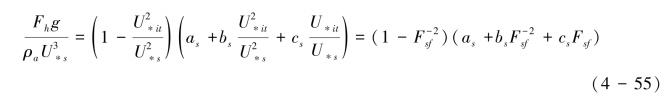 式(4-50)中的U2∗it是指沙粒碰撞起跳对应的摩阻风速的平方,Δup(0)是指在床面处沙粒水平速度增速。
