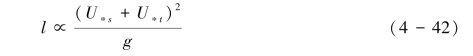 式(4-39)右边的第二项可表述为upi-upl≅Vpl, 此关系可理解为沙粒轨迹形成过程中水平动量的增加与初始垂直动量的大小成正比。这样,Vpl可表示为式(4-41):