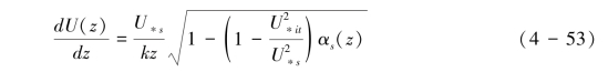 式(4-52)把沙粒水平速度的增加和湍流切应力及风速梯度联系起来,于是跃移层内风速廓线方程可表示为式(4-53):