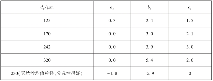 表4-1 式(4-55)的经验参数随沙粒粒径的变化(根据Sørensen(2004) 数据整理 )