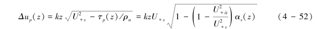 式(4-49)中的Δup(z)是单个沙粒在z高度平均的水平增速,不过和White(1979)不同的是,Δup(z)是从沙粒轨迹方程来求解而非量纲分析获得。当然此轨迹方程求解也采用了一些量纲分析的假定(Sørensen,2004)。