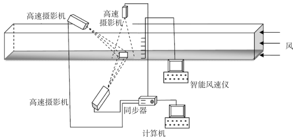 图4-6 风洞实验高速摄影三维拍摄的示意图