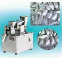 国内生产的饺子成形机为灌肠式饺子机。使用搅拌磨砂机时先将和好的面、馅分别放入面斗和馅斗中,在各自推进器的推动下将馅心挤入馅料管,通过滚压、切断,做成单个饺子。