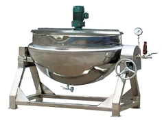 蒸汽夹层锅在面点制作中有较大的优势,操作简单,熬煮馅心不易焦煳,煮面条、馄饨、饺子也非常方便。操作时将夹层锅中的冷凝水放尽再旋转蒸汽阀门,打开蒸汽阀门,蒸汽夹层锅就可以加热升温。随着压力的增大,锅壁的温度可超过100 ℃。蒸汽夹层锅有两种,一种是固定式,另一种是可倾式。