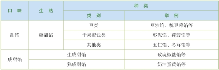 馅心种类很多,花色不一,分类主要从原料、口味、制作方法3个方面进行。