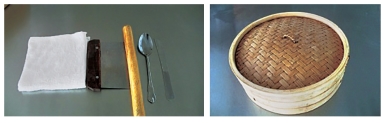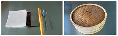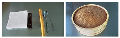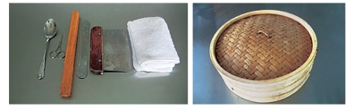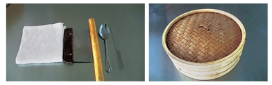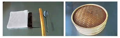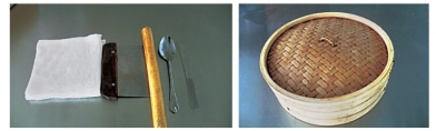 图3.37 刮板、擀面杖、挑馅板、蒸笼、汤匙或镊子等