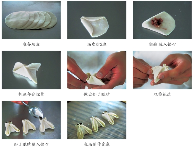 ③在捏制知了饺时注意眼睛大小,过大过小皆影响美观。