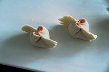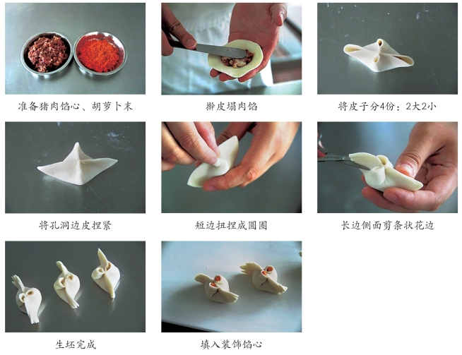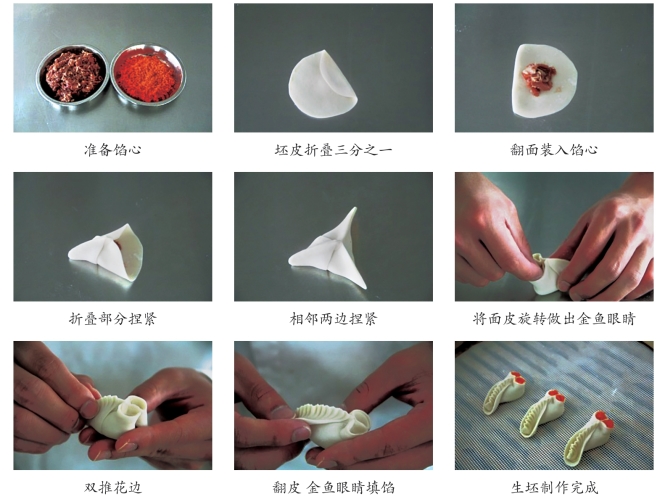 ③在捏制金鱼饺时注意眼睛大小,过大过小皆影响美观。