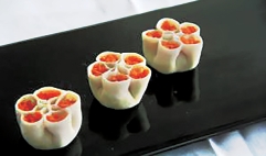 形似飞轮,剪条均匀细腻,造型别致,质地鲜嫩。