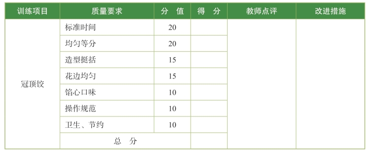 ③注意冠顶饺造型要立体、挺括、大小一致。