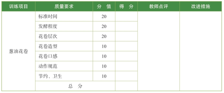 表4.2 葱油花卷训练标准