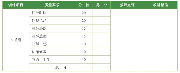 表5.6 木瓜酥训练标准