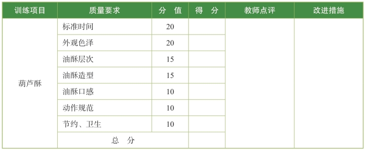 表5.5 葫芦酥训练标准